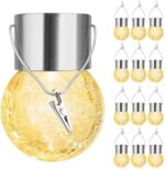 The 12-pack multicolor or warm white crackle glass hanging lights perfectly blend aesthetics and technology. Each LED light is powered by solar energy and not connected by a cord. making it easy to turn them anywhere you like. These crackle glass solar lights can add ambient colored light to your home. tree branch. Christmas tree ornaments. back yard. campground. or patio umbrella around the perimeter. etc.