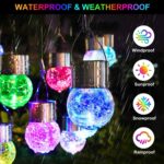 The crackle glass solar lights create a wonderful atmosphere by emitting various colors. making them an excellent indoor and outdoor decoration choice. These outdoor solar hanging lights are ideal for enhancing the aesthetics of your garden. trees. patios. yards. and pathways with a decorative touch.