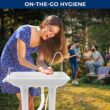 Compact and Lightweight Design – Can be Used Widely for Public Areas. Checkpoints. Worksites. Camping. and any Outdoor Activities What’s in the Box: – (1) Bottom Water Tank – (1) Wash Basin – (2) Column Stands